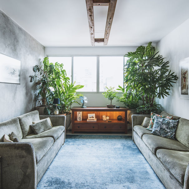 Os clientes buscavam uma linguagem rústica e brutalista, que valorizasse os materiais em sua forma original. Todas as bancadas foram produzidas em concreto na obra, as paredes rebocadas com areia fina, o piso foi executado em cimento queimado, e por fim, os móveis e as plantas dos clientes foram recolocados, criando um ambiente único.